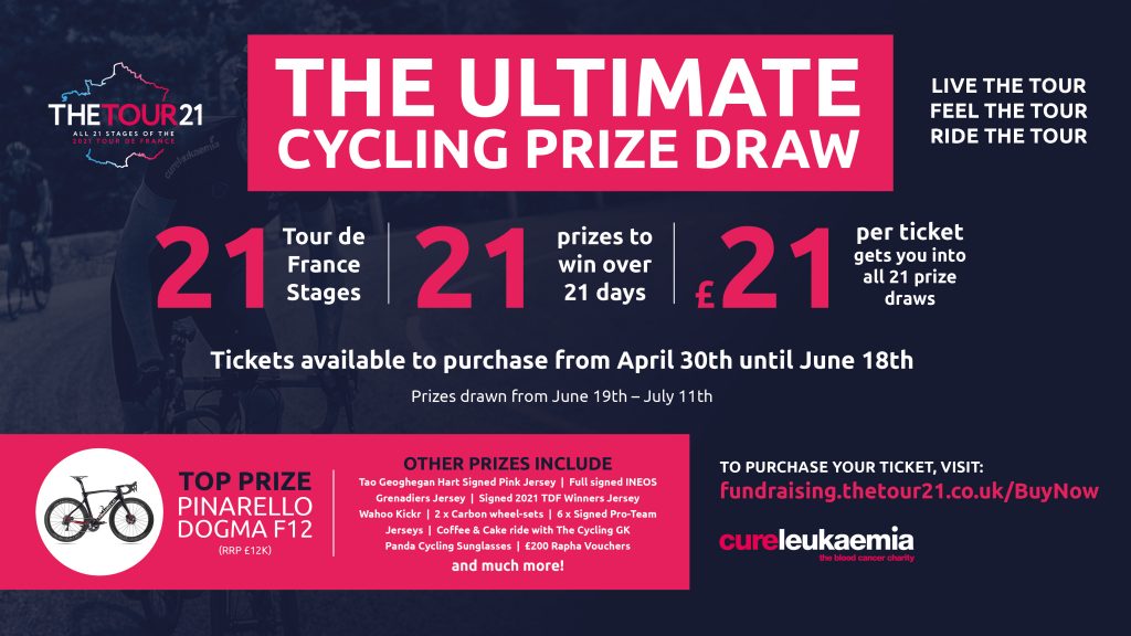 Tickets are now available to purchase for The Ultimate Cycling Prize Draw with all proceeds going towards The Tour 21 team’s fundraising for Cure Leukaemia.